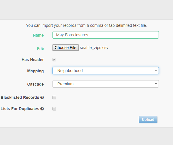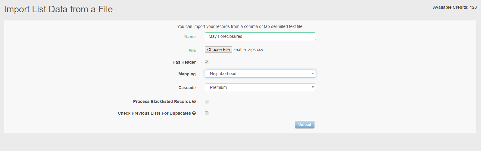 The service works with any list, as long as it can be converted into a .CSV spreadsheet. Simply map the fields and receive your results in moments. Contact +plus is ideal for identifying pre-foreclosure, non-owner occupied, free and clear, code violations, probate, divorce.